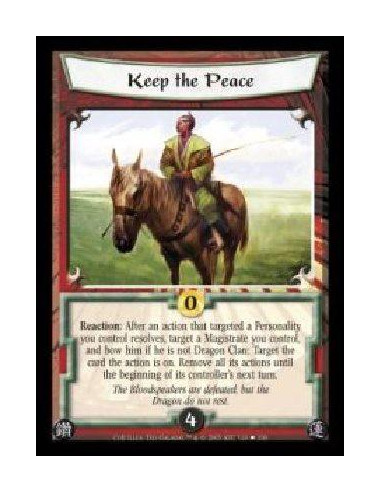 Reaction: After an action that targeted a Personality you control resolves, target a Magistrate you control, and bow him if he is not Dragon Clan: Target the card the action is on. Remove all its actions until the beginning of its controller's next turn.