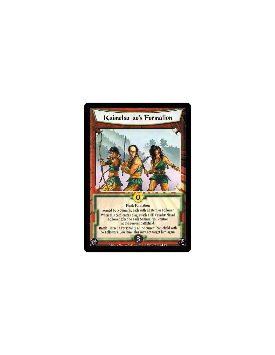 Kaimetsu-uo's Formation  - Flank Formation. Formed by 3 Samurai, each with an Item or Follower. When this card enters play, atta