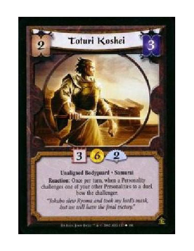 Toturi Koshei  - Unaligned Bodyguard * Samurai Reaction: Once per turn, when a Personality challenges one of your other Personal