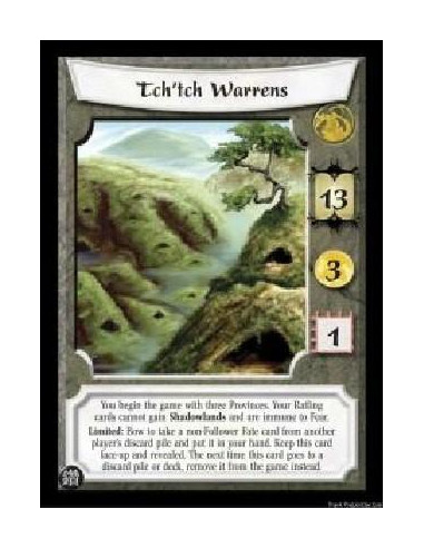 Tch'tch Warrens (Español)  - You begin the game with three Provinces. Your Ratling cards cannot gain Shadowlands and are immune