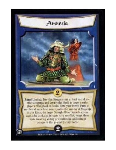 Amnesia  - Ritual Limited: Bow this Shugenja and at least one of your other Shugenja, and destroy this Spell, to target another