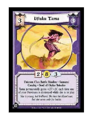 Utaku Tama  - Unicorn Clan Battle Maiden * Samurai Cavalry * Soul of Otaku Tetsuko Tama permanently gains +2F/+2C each time one