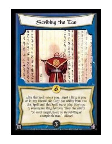 Scribing the Tao  - After this Spell enters play, target a Ring in play or in any discard pile. Copy one ability from it to this