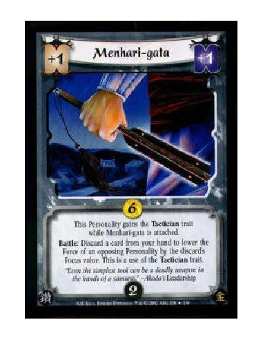 Weapon. After this card attaches to a Human Personality from a player's hand, dishonor the Human, then lose 4 Honor. Ratling Personalities have the Samurai trait while in an army with this card