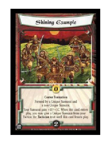 Shining Example  - Center Formation Formed by a Unique Samurai and a non-Unique Samurai. Your Samurai gain +1F/+1C. When this ca