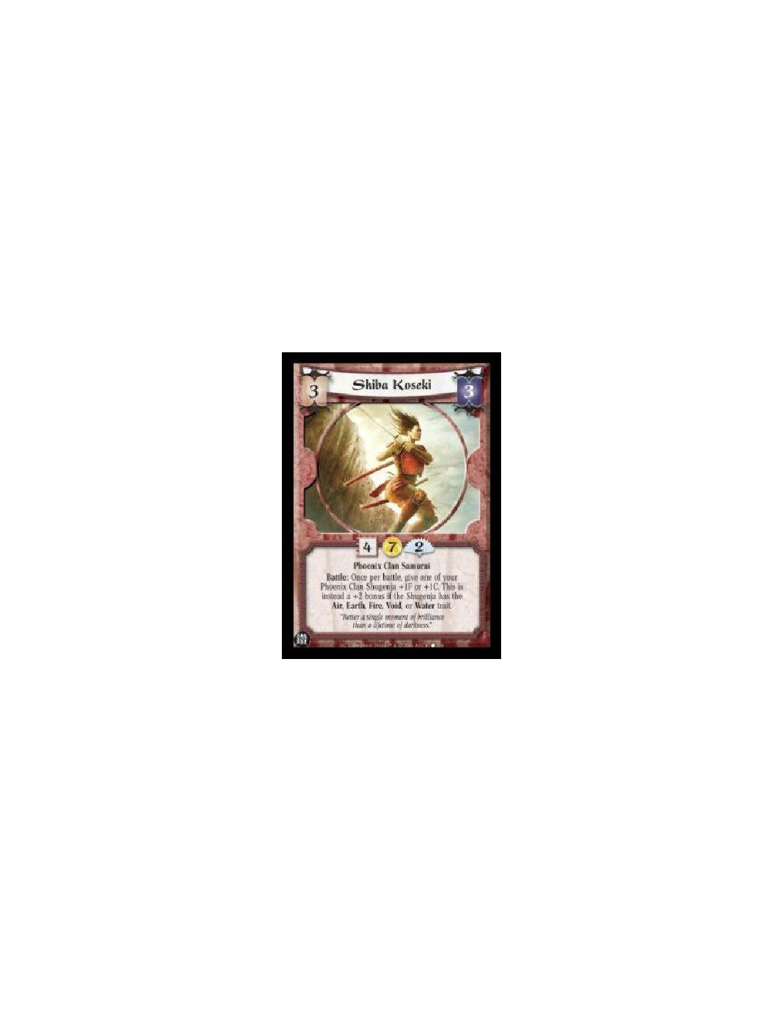 Phoenix Clan • Nonhuman • Phoenix • Fire • Shugenja • Cavalry Limited: If Houhou is honorably dead: She rises from the ashes. Bring her into play, paying 4 less Gold. If she entered play, gain 3 Honor (this is an Honor gain for entering play).
