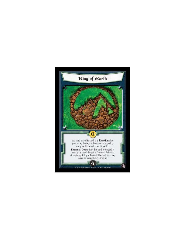 Ring of Earth  - You may play this card as a Reaction after your army destroys a Province or opposing army as the Attacker or De