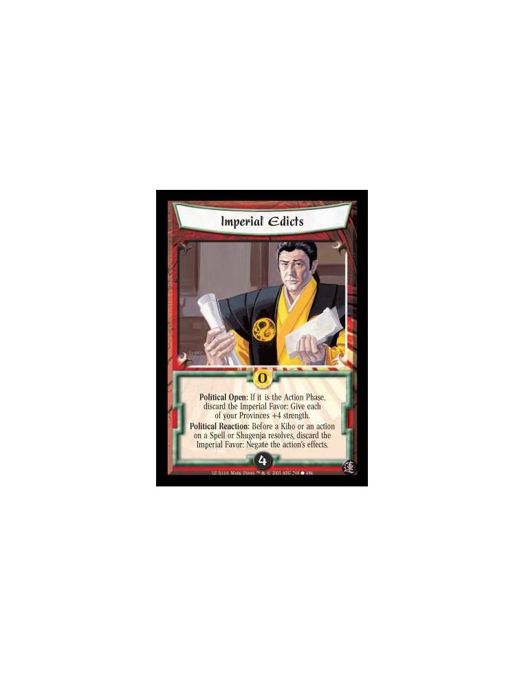 Political Battle: Bow one of your target Courtiers, iven if he is at home: Target an opposed honorable Personality in antoher's player army. His controller may choose to dishonor him and lose 2 Honor. If the Personality is still honorable, take the Imperi