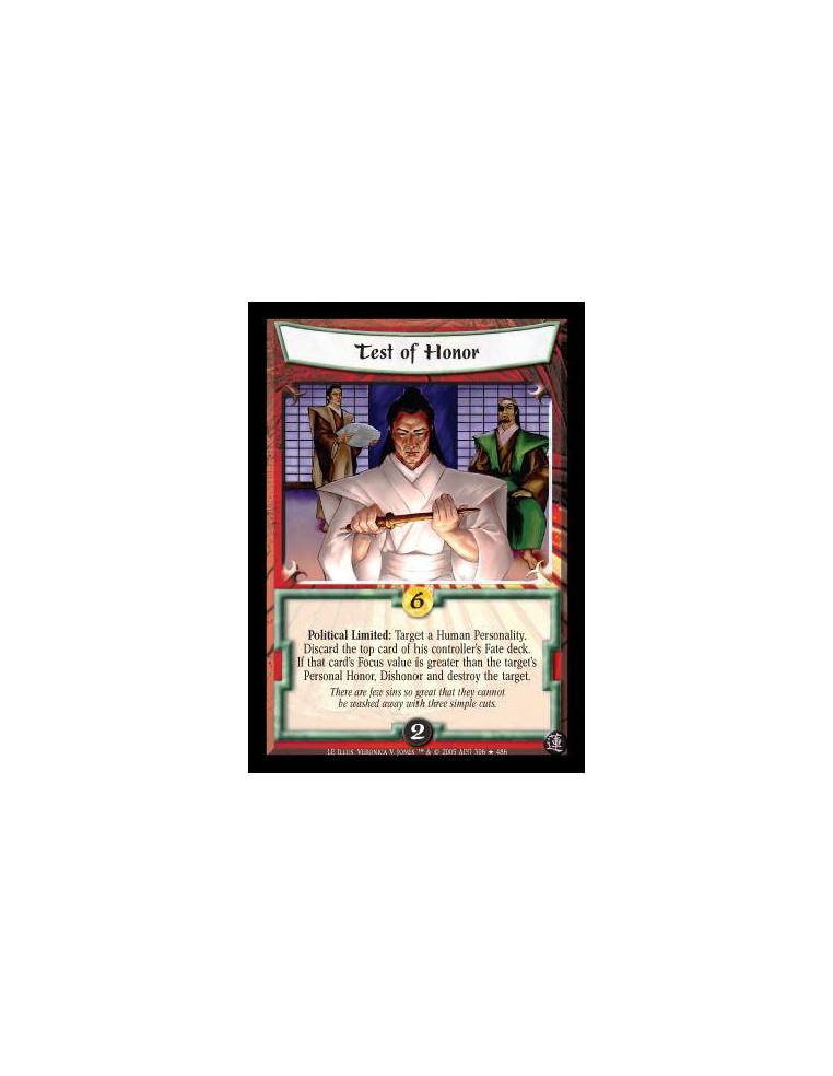 Scorpion Clan • Infiltrator • Unique Open: Target a personality with 3 or lower Chi controlled by the active player: If the target can legally assign to an attacking army, his controller must declare an attack this turn and assign the Personality. Lose 2 Honor.